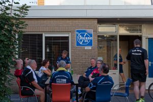 Zur Begrüßung wurden kleine Geschenke ausgetauscht, die Niederländer hatten extra für das Event einen tollen Pokal angefertigt und Francesco Marini hatte extra eine Begrüßungsrede auf deutsch vorbereitet. Holger Straede übergab stellvertretend unseren Hilteraner Vereinswimpel an den HTTC Vitesse 35.