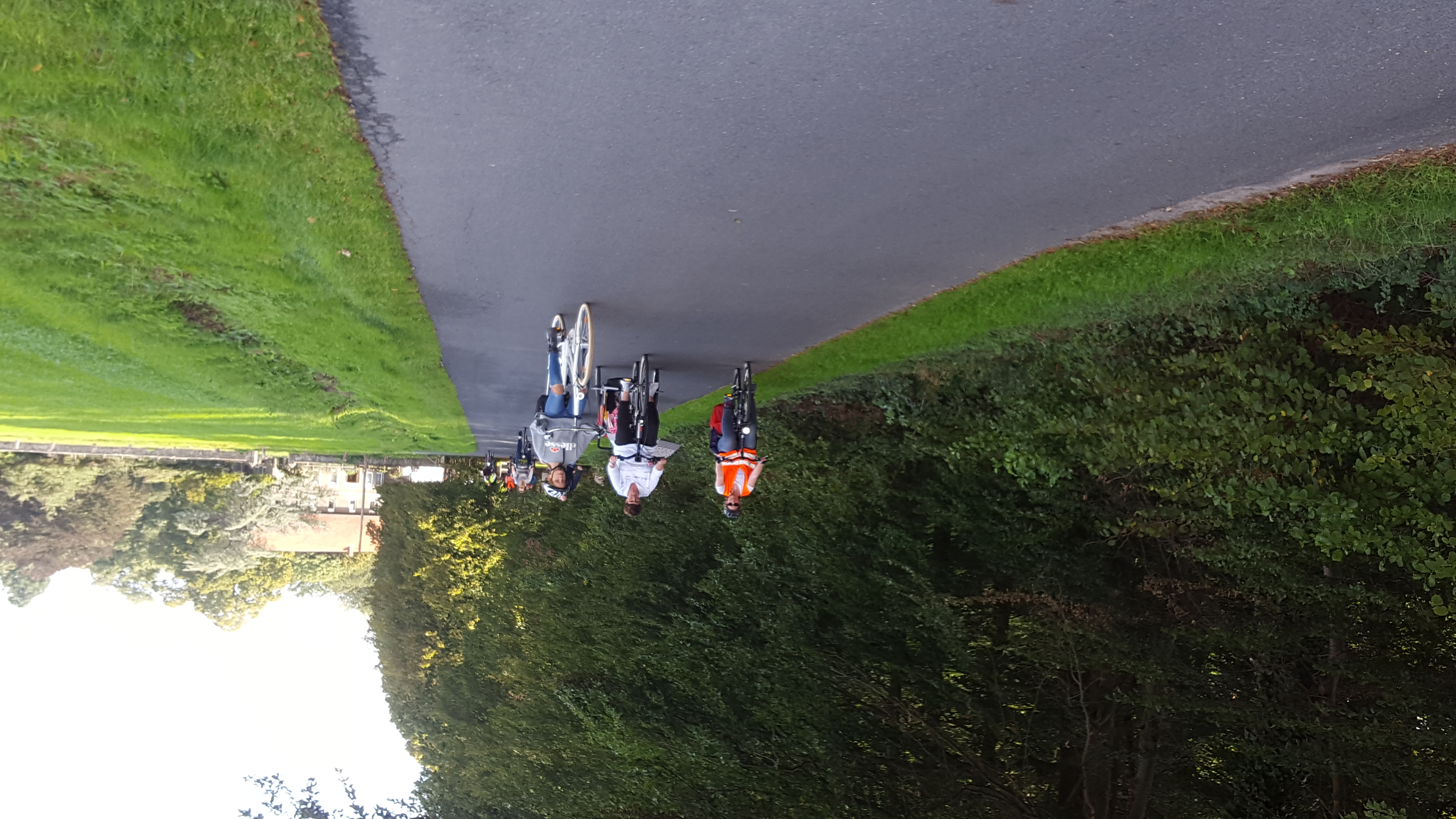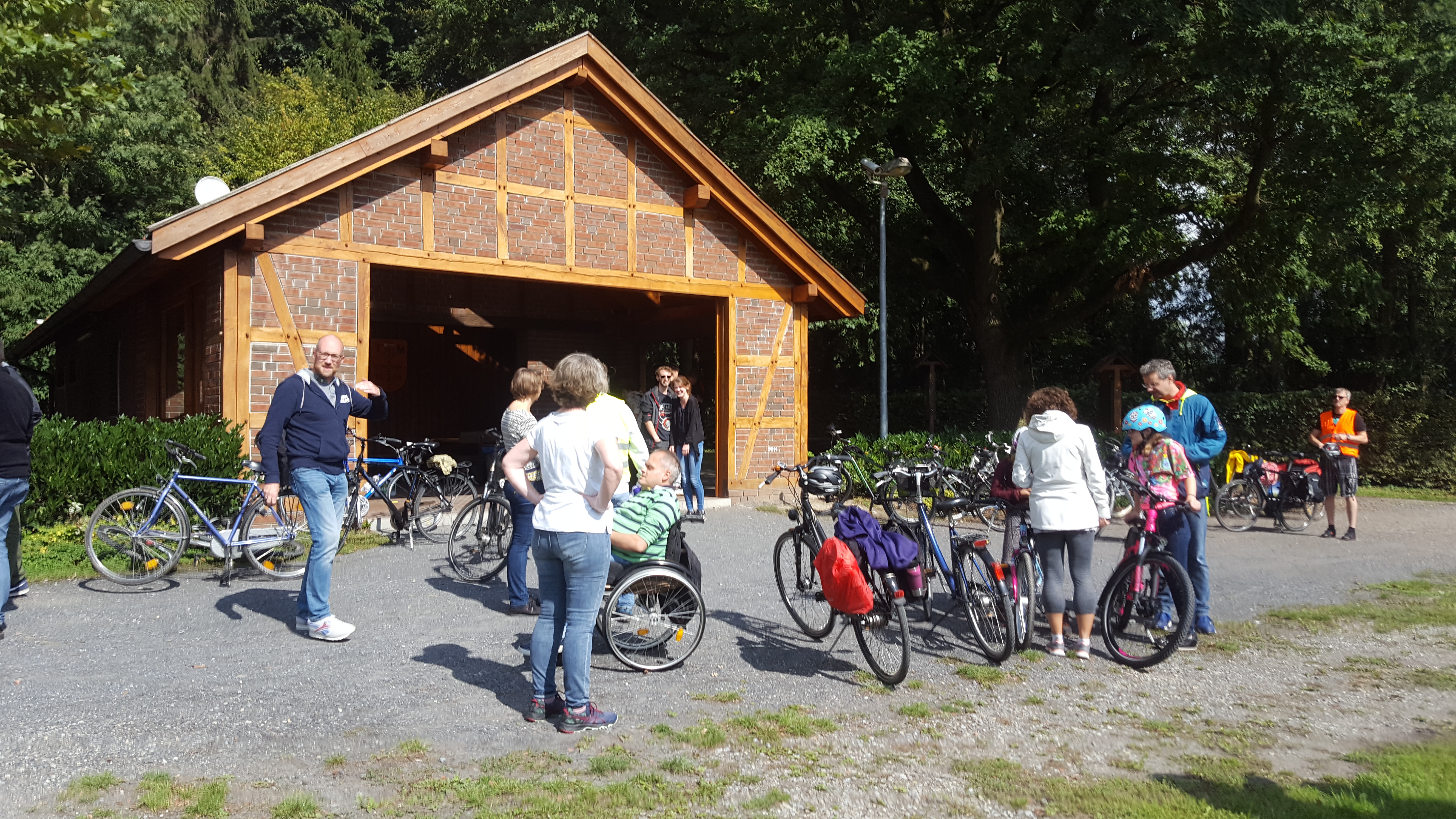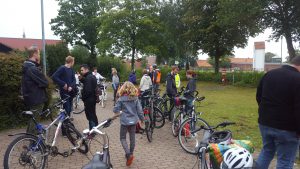 Zunächst trafen sich die Radfahrer um 11:01 Uhr in Hilter an der Ulrich-Rau-Sporthalle. Nach der Begrüßung durch das Orga-Team (Wolfgang Burbach, Stephan Scholl und Michael Fritz) ging es dann auch schon los über Natrup nach Sentrup zur Wassertretstelle wo die erste kurze Pause eingelegt wurde. Doch bis hierhin gab es schon ein paar Überraschungen, nach 300m hatte Max schon einen Platten, fuhr nach Hause, wechselte das Fahrrad und holte uns an der Wassertretstelle wieder ein. Und wir bogen einmal falsch ab was zu einer spontanen Aufgabe für die Kleinsten führt: Ziegenzählen.
