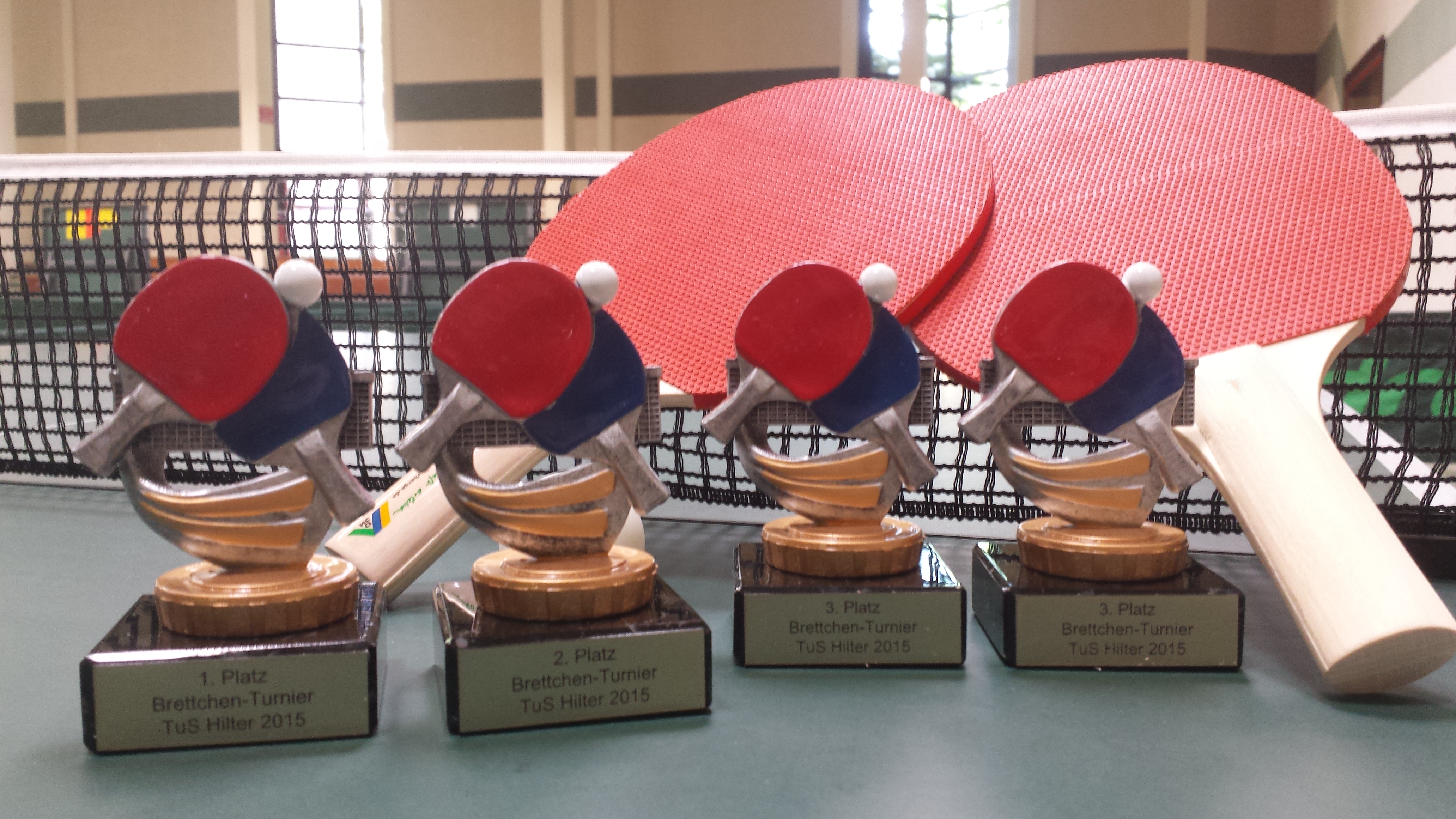 Spielen wie vor 60 Jahren war die Devise beim 1. Tischtennis Brettchen-Turnier. Die Schläger bestehen aus beidseitigen Noppen-Belägen ohne Schwammunterlage, das Holz aus Fünffach-Sperrholz. „Pok-Pok“ war am 03.07.2015 das Geräusch welches die Halle dominierte, trotz an die 30 Grad fanden 22 Spieler den Weg in die Sporthalle. Neben dem Sport gab es noch gegrillte Würstchen und kühle Getränke. Vor allem stand hier aber der Spaß im Vordergrund, da so einige Schläge mit diesen Brettchen einfach nicht funktionieren wollten.